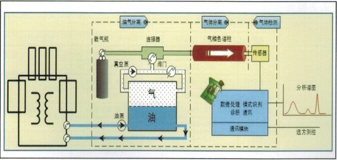 自從1960年以來,世界電力工業(yè)廣泛使用離線實驗室的通用氣相色譜法,應用于對變壓器油中溶解的特征氣體進行測量和分析,作為電力部門的設備是否正常運行的重要依據(jù)。但離線的方法,由于其測量周期較長,脫氣過程誤差較大,測試方法影響因素多等問題,難以滿足安全生產(chǎn)和狀態(tài)檢修的要求。因此,變壓器油中多種故障氣體的在線監(jiān)測系統(tǒng)的應用就成為迫切的需求。